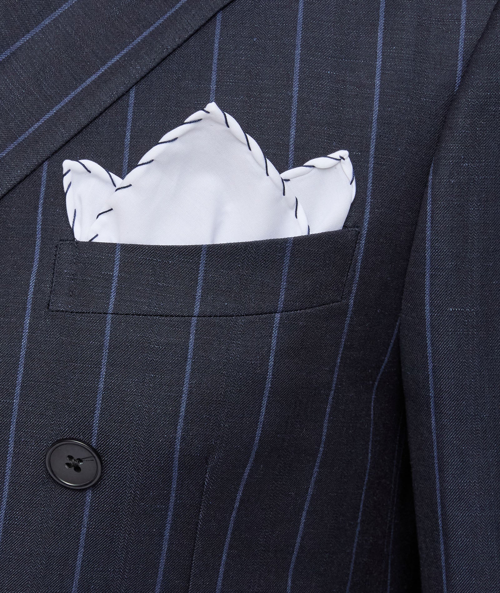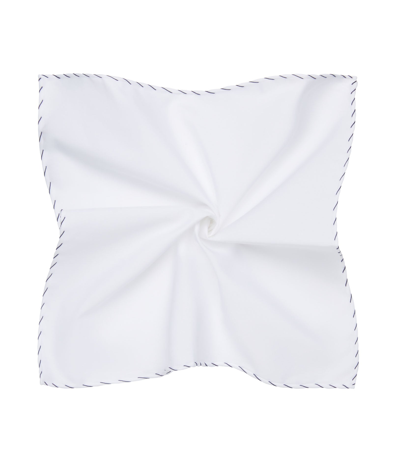 Pochette en coton confectionnée en Italie. Forme carrée, agrémentée d'un ourlet bleu foncé. À porter dans la poche poitrine d'une veste ou d'un blazer pour une touche de style supplémentaire.