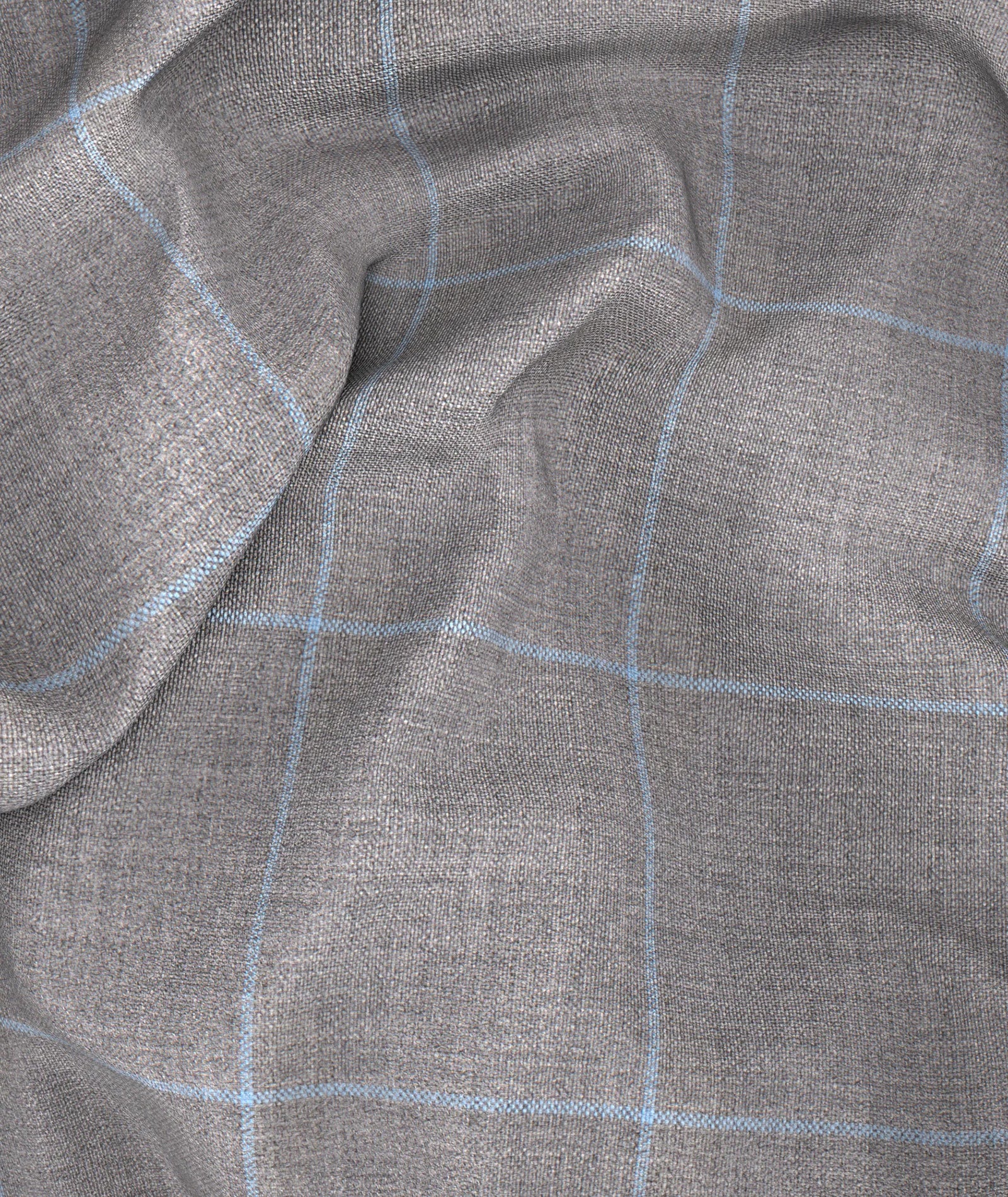 grey wool with light blue checks